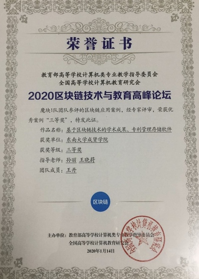 近日,2020区块链技术与教育高峰论坛在厦门成功举办,太阳成tyc7111cc集团荣获三等奖。