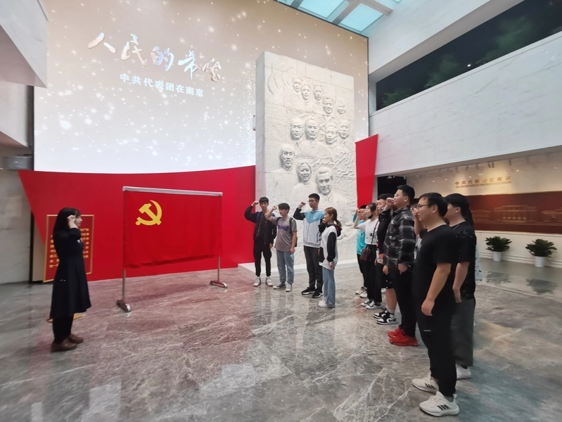 本次活动由太阳成tyc7111cc集团电子科学与技术党支部书记孙瑾微老师带队。党员们参观了中国共产党代表团梅园新村纪念馆,并举行了新党员入党宣誓仪式。在鲜红的党旗下,由员工党员任嘉慧同学领誓,7名新进党员进行了入党宣誓,现场的全体党员同志同时也重温了入党誓词。