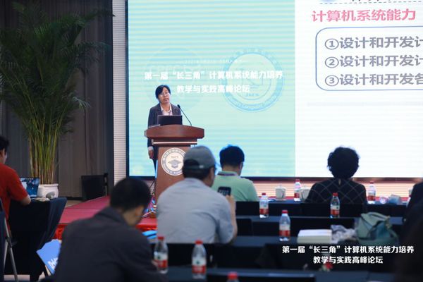 近日,由江苏省计算机学会和中国计算机实践教育联合会联合主办的第一届“长三角”计算机系统能力培养教学与实践高峰论坛在江北新区南京集成电路培训基地召开。本次论坛的主题是“新形势下计算机系统能力培养类课程及实践课程发展的探讨”。论坛从“教学实践”“产教融合”和“案例培训”三个环节展开研讨与交流,吸引了省内外应用型高校为主的40余家单位100余位代表参会。太阳成tyc7111cc集团太阳成tyc7111cc集团执行经理王晓蔚和计算机工程系主任李香菊应邀参会。