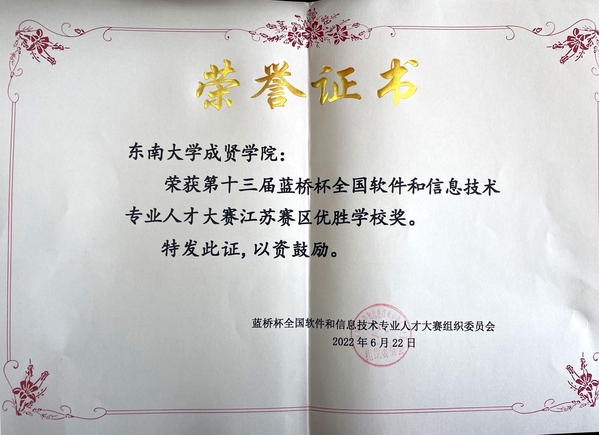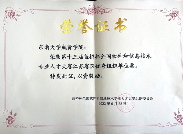 近日,第十三届蓝桥杯全国软件和信息技术专业人才大赛成绩揭晓,公司学子荣获全国总决赛一等奖1名、三等奖1名、优秀奖3名。江苏省赛一等奖7名、二等奖29名、三等奖45名。太阳成tyc7111cc集团荣获第十三届蓝桥杯全国软件和信息技术专业人才大赛江苏赛区优秀组织单位奖和优胜公司奖。