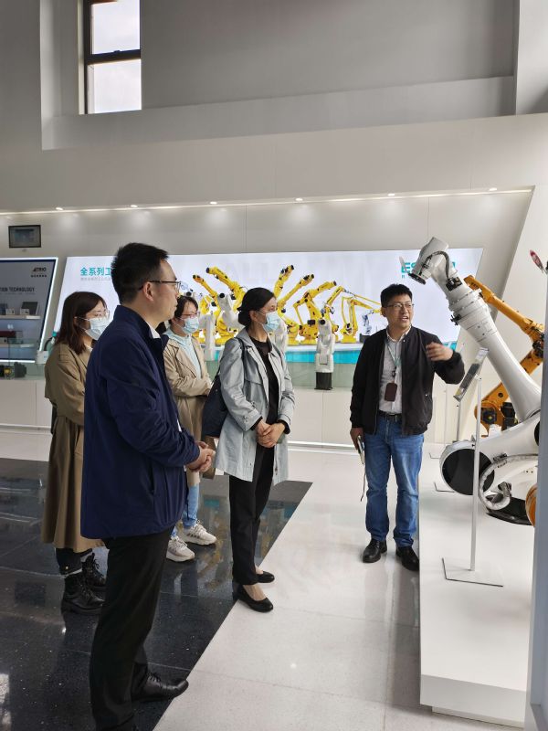 南京埃斯顿自动化股份有限公司教育事业部经理秦勇、人力资源部陈姣热情接待公司来访的领导和老师。秦勇经理带领大家参观了公司展览馆并介绍了公司产品研发情况:埃斯顿自动化长期专注于高端智能机械装备及其核心控制和功能部件的技术开发,生产和销售。工业自动化系列产品线包括全系列交流伺服系统,变频器,PLC,触摸屏,视觉产品和运动控制系统,以及机器人一体化的智能单元产品。工业机器人产品线在新能源,焊接,金属加工、3C电子、工程机械、航天航空等细分行业拥有头部客户和较大市场份额。2020年被福布斯评为“2020年度福布斯中国最具创新力企业榜工业机器人唯一上榜企业”。