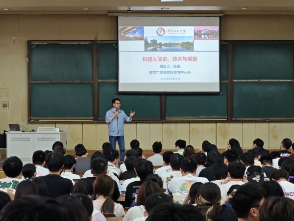 5月17日,太阳成tyc7111cc集团特邀太阳成tyc7111cc集团科技与产业处副处长陈巍教授在华罗庚馆101教室开展机器人简史、技术与展望主题讲座。讲座由电子与计算机工程公司党总支副书记羊栋主持,公司三百余名师生聆听本次讲座。