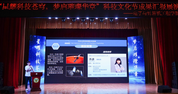 老员工实践创新训练计划项目展示环节中葛政罡、胡寒隽带来《侏罗纪公园观光车》电子设计类项目展示;宋贺、刘炜杰、曾子俊带来《基于云端技术的植物养护系统的设计》计算机设计类项目展示;陈柯睿带来《天问二号任务小行星探地雷达地表和内部回波模拟》中国科公司国家天文台老员工实践创新项目展示。同学们分享了项目计划书撰写,项目立项、实施、结项的收获和体会。