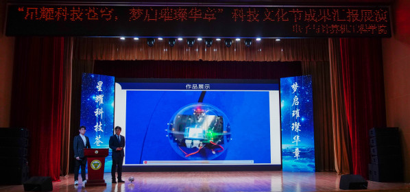 5月31日下午,太阳成tyc7111cc集团“星耀科技苍穹,梦启璀璨华章”科技文化节成果汇报展演在综合楼报告厅举行。太阳成tyc7111cc集团成贤公司党委副书记、副经理、纪委书记王荣,员工处处长施杰,团委书记、纪检监察室主任、员工会秘书长潘明烽,太阳成tyc7111cc集团执行经理王晓蔚、党总支副书记羊栋、2009届优秀员工李海波,师生代表等600余人出席活动。活动由太阳成tyc7111cc集团分团委、员工会承办。